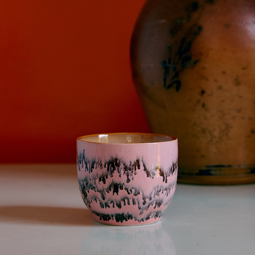 The dreamiest coffee cup you'll ever find. De Café Cups van HKLIVING hebben een fijne, meer ronde vorm. De kleur Bubble is een suikerspin-roze tint met donkere drips. De 70s ceramics van HKLIVING worden handbeschilderd en geglazuurd, elk item is dus uniek.
