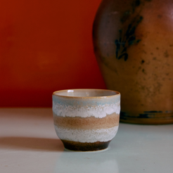 The dreamiest coffee cup you'll ever find. De Café Cups van HKLIVING hebben een fijne, meer ronde vorm. De kleur 'skyline' is gestreept in beige, bruine en blauwe tinten. De 70s ceramics van HKLIVING worden handbeschilderd en geglazuurd, elk item is dus uniek.