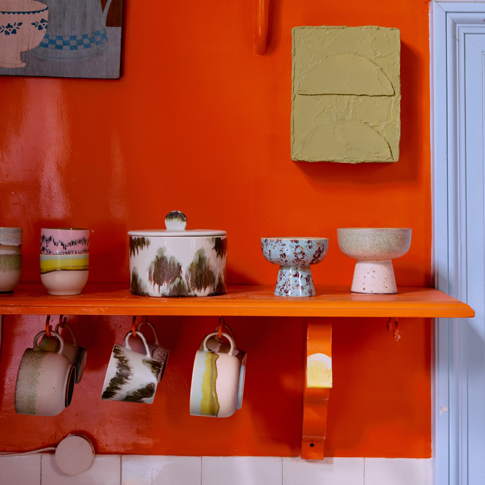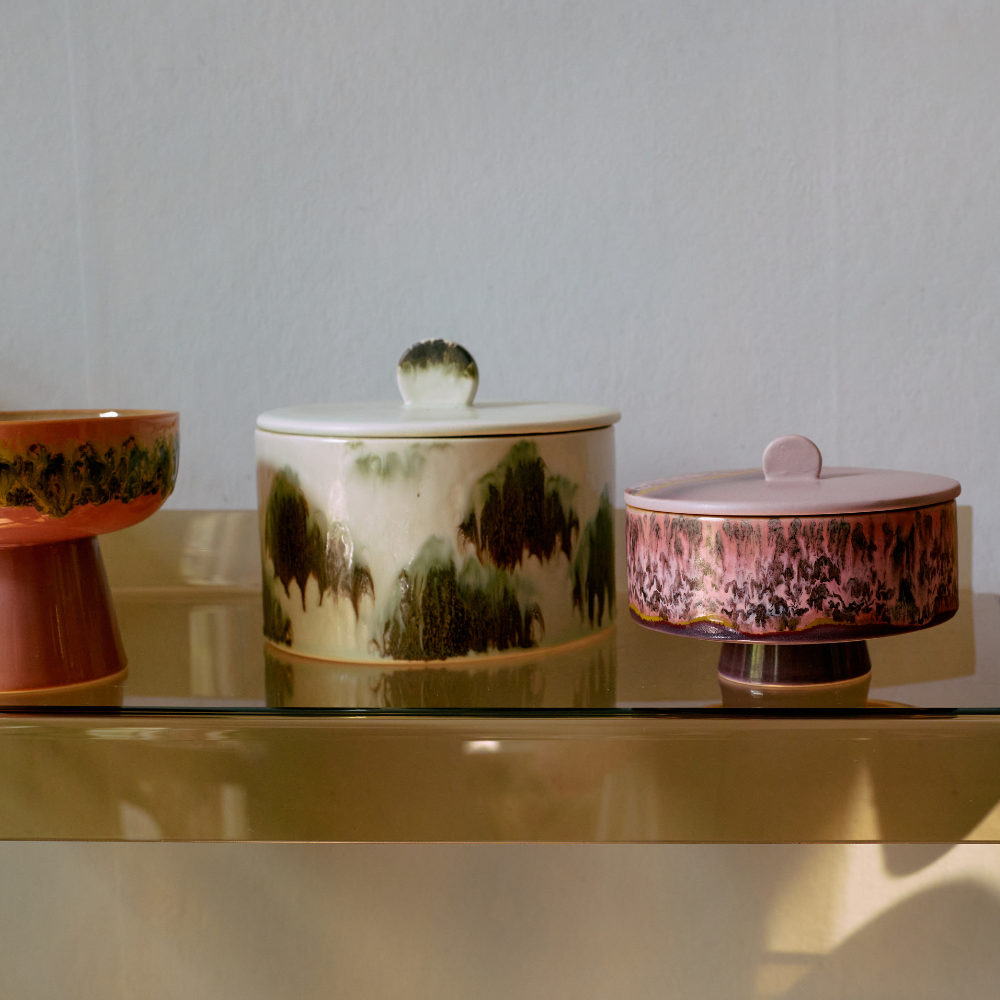 Can't keep my hands off the cookie jar! De Cookie Jar van HKLIVING is de ultieme opbergpot voor je favoriete cookies. De kleur Tide is een prachtige combinatie van groene tinten in een stoer patroon en steelt de show in de keuken of op tafel. De 70s ceramics van HKLIVING worden handbeschilderd en geglazuurd, elk item is dus uniek.