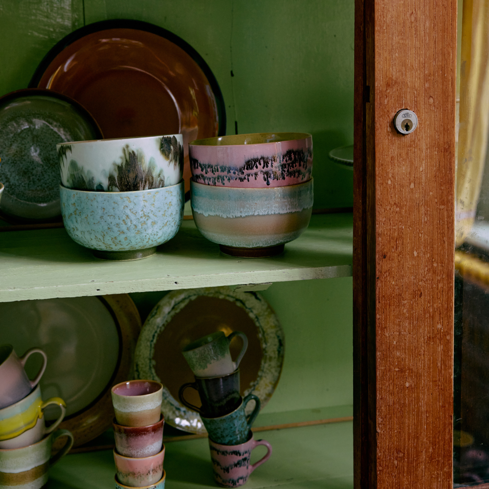 Bring some seventies flair to the table. De Noodle Bowl in de kleur Bubble van HKLIVING brengt direct kleur en sfeer op tafel. Deze prachtige, unieke schaaltjes kun je ook perfect matchen met de andere styles uit de 70s ceramics collectie. Een ideaal formaat voor noodles, soepjes en snacks! De 70s ceramics van HKLIVING worden handbeschilderd en geglazuurd, elk item is dus uniek.