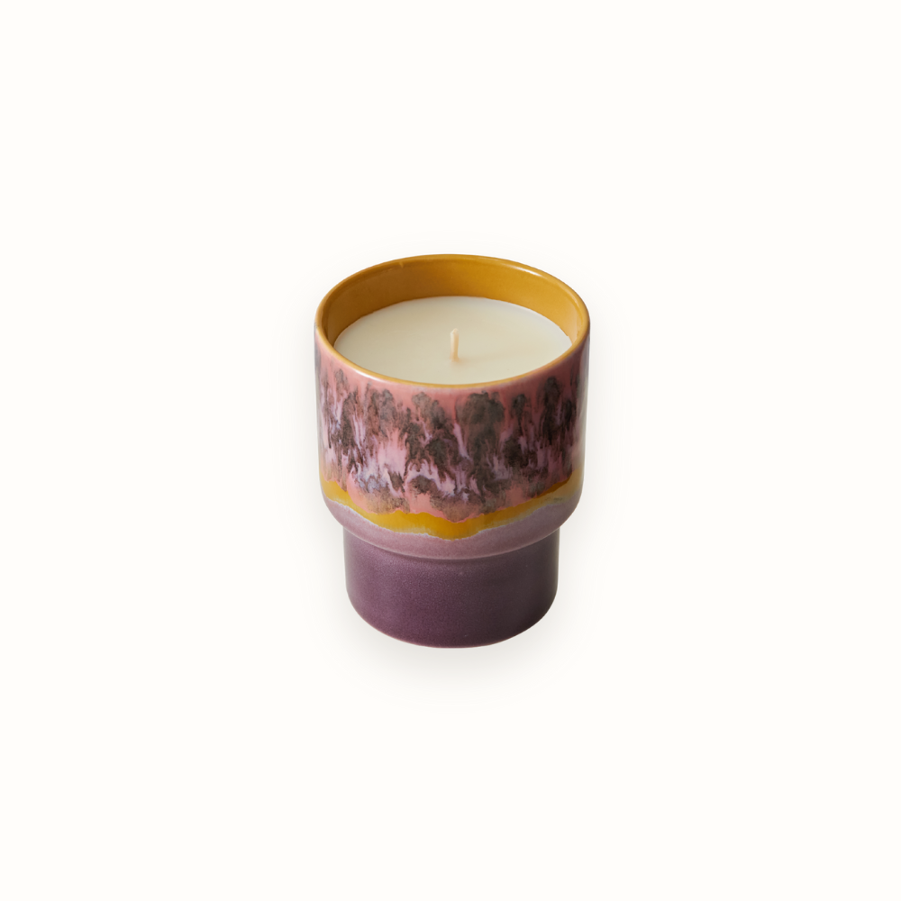 A bit of Cape Town at home. Deze heerlijke geurkaars maakt deel uit van de HKLIVING 70s ceramics en is gegoten in een prachtige glazed houder. Steek de Cape Town geurkaars aan en de frisse geur van salie roept de ongerepte schoonheid van de kliffen en kustpaden op.Delicate rozenblaadjes brengen een vleugje van de weelderige tuinen van de stad. De warme, aardse tonen van sandelhout en cederhout vangen de essentie van de surfcultuur en de adembenemende landschappen van Kaapstad.
