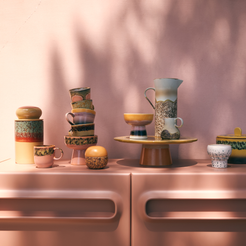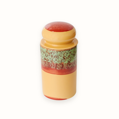 The storage jar of your dreams. De Storage Jar van HKLIVING is een fijne, aesthetically pleasing manier om van alles op te bergen. Van pasta tot rijst en van coffee cups tot aan je geheime candy stash. De kleur Cove is een combinatie van laagjes en strepen in groen, rood en geel. De 70s ceramics van HKLIVING worden handbeschilderd en geglazuurd, elk item is dus uniek.