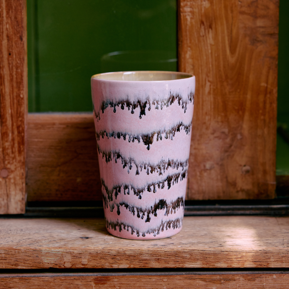 Retro yet modern: the coolest tea mugs. De Tea Mugs van HKLIVING hebben een subtiele meer rechte vorm. De kleur Bubble is een suikerspin-roze tint met donkere drips. De 70s ceramics van HKLIVING worden handbeschilderd en geglazuurd, elk item is dus uniek.