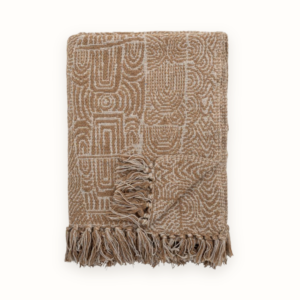 De prachtige Bresso Throw van Bloomingville voegt warmte toe aan iedere ruimte. Van slaapkamer tot bank! Het mooie geweven patroon in bruin tinten en de franjes onderaan zorgen voor een knusse sfeer. Gebruik je 'm even niet? Hang 'm dan mooi over de leuning van je bank of rol 'm op in een leuke mand. Extra fijn: eindeloos te combineren.
