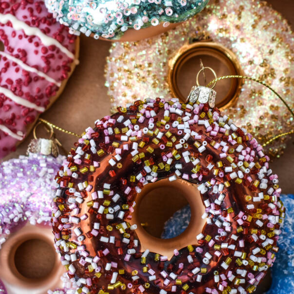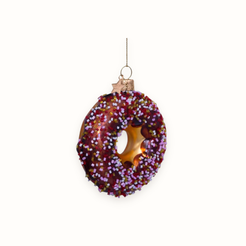 So sweet you can't resist: Vondels' Donut Ornament. Met chocolate glaze en gekleurde sprinkles. Alle ornamenten van Vondels zijn gemaakt van glas, mondgeblazen, met de hand beschilderd en met de grootste zorg versierd.