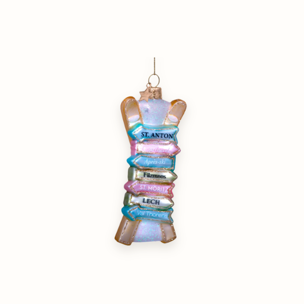 Van Val Thorens naar St. Moritz chic! Vondels' Ski Names Ornament wijst je de weg naar de mooiste ski-gebieden en is perfect te combineren met alle andere wintersport-ornamenten. Alle ornamenten van Vondels zijn gemaakt van glas, mondgeblazen, met de hand beschilderd en met de grootste zorg versierd.
